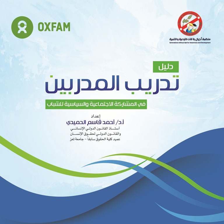 صدر عن منظمة أجيال بلا قات للتوعية والتنمية في تعز دليل تدريب مدربين في المشاركة الاجتماعية والسياسية للشباب والذي أعده استاذ القانون الدولي الانساني، الدكتور أحمد قاسم الحميدي , ويهدف الدليل ،الى بناء قدرات ومهارات المدربين في مجال المشاركة الاجتماعية والسياسية للشباب