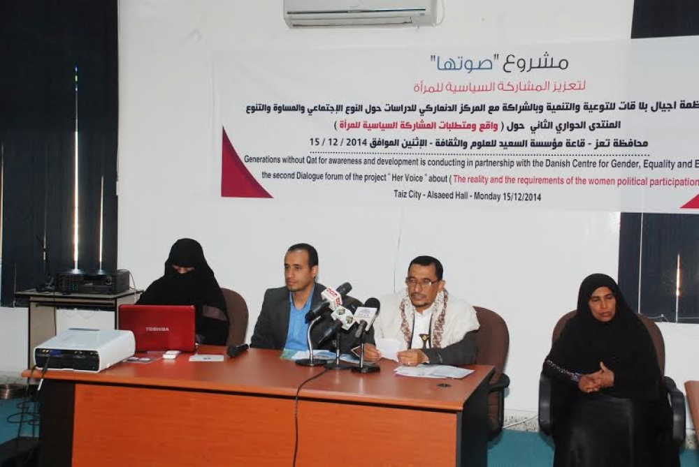 تقيم منظمة أجيال بلا قات وبالشراكة مع المركز الدنماركي (KVINFO) المنتدى الحواري الثاني بتعز حول واقع ومتطلبات المشاركة السياسية للمرأة